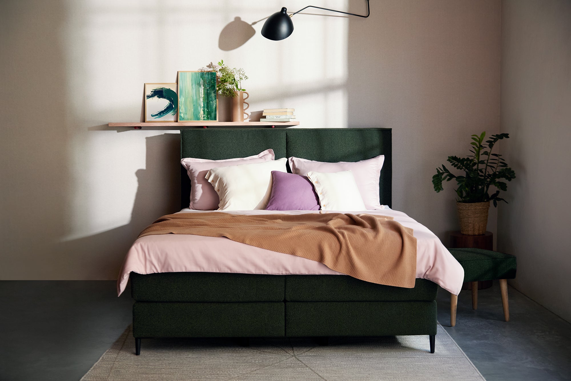 Get creative, select your preferred features and build your dream bed in a minute! With our intuitive configurator, you can design your family boxspring bed exactly the way you want it. Choose your preferred headboard, firmness level, fabric, and extra features, like electrical lifting or built-in storage solutions.