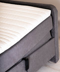 Our bed base opens smoothly and is supported by gas springs, providing stability and easy access to the storage space.